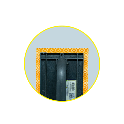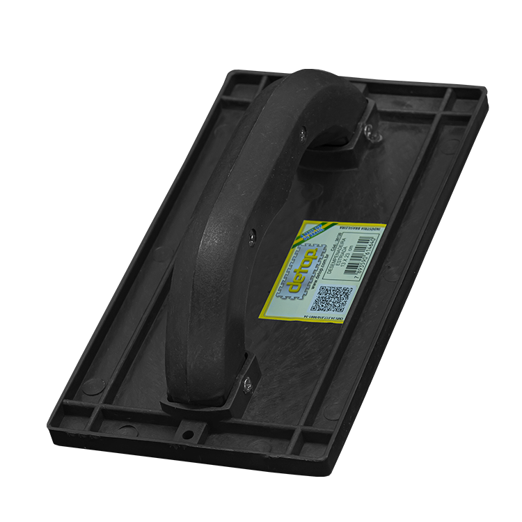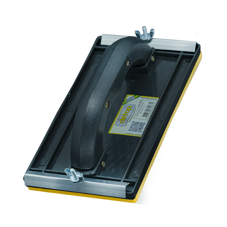 Bordas de 15 mm em EVA nas 04 laterais, podendo a ferramenta ser utilizada por muito mais tempo. Facilita a remoção dos excessos de rejuntamento sobre o revestimento. Por ser leve, torna o trabalho menos pesado, e consequentemente aumenta o rendimento com mais rapidez e menos esforço. Reforçada! Cabo parafusado com 2 parafusos na lateral e 4 parafusos na base. Reforço de 2 frisos ressaltados em cada lateral superior da base. Cabo ergonômico com excelente péga que facilita a operação. Injetado em polipropileno, material leve e resistente.