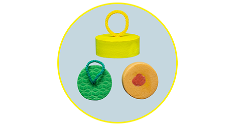 Tampa em borracha EVA flexível e impermeável, alça superior em cordão de Polipropileno flexível de aproximadamente 35mm, solda inferior por temperatura.