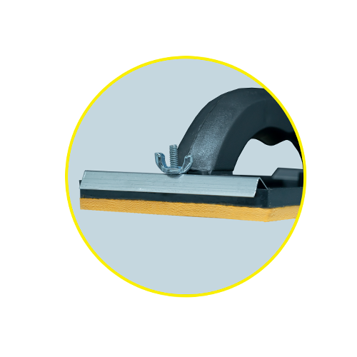 Maior rendimento no lixamento! Possui travas para fixação da lixa em aluminio, fixada manualmente com porca borboleta e parafuso zincado que tem maior du- rabilidade. Reforçada! Cabo parafusado com 2 parafusos na lateral e 4 parafusos na base. Re- forço de 2 frisos ressaltados em cada lateral superior da base. Cabo ergonômico com exelente péga que facilita a operação. Por ser leve torna o trabalho menos pesado, e consequente- mente aumenta o rendimento com mais rapidez e menos esforço. Injetado em polipropileno, material leve e resistente.