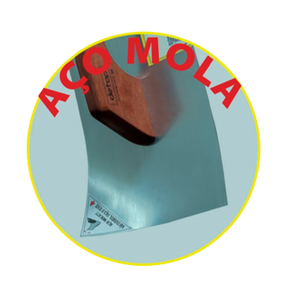 Aço mola temperado, o mesmo aço utilizado em facas , serras e discos de corte. O aço mola temperado possui maior durabilidade e resistência, tanto nas ações de uso do pro- duto, bem como nas ações químicas do cimento, gesso, massas e aditivos diversos presentes nos produtos da construção civil. posui o efeito mola! ou seja , não entorta, é flexível ao ser forçada e pressionada durante seu uso, e assim permanece, dentro dos limites das utilizações para o qual o produto foi desenvolvido. Base reforçada com 4 parafusos. Cabo em madeira leve, reforçado, e tratado para se tornar impermeável. (não absorver água e umidade). Largura de 14,5 cm que proporciona maior rendimento nas aplicações .